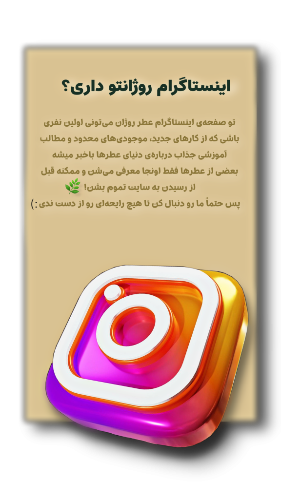 موندگاری عطرا بسته به طبع و رایحهی عطر متفاوته، مثلا ترکیب عطرای خنک و ملایم از نت های گل، گیاه و میوههایی مثل لیمو، پرتقال و سایر مرکباته که دوام و موندگاری کمتری دارن نسبت به عطرایی که نُت های گرم مثل وانیل و ادویه و دارچین دارن. (برای توضیحات کاملتر حتما هایلایت ” اسرار رایحه ” پیج رو ببین)